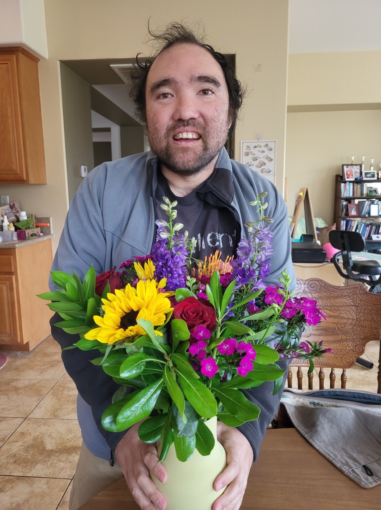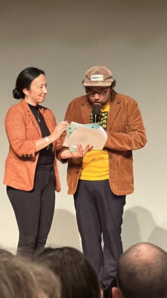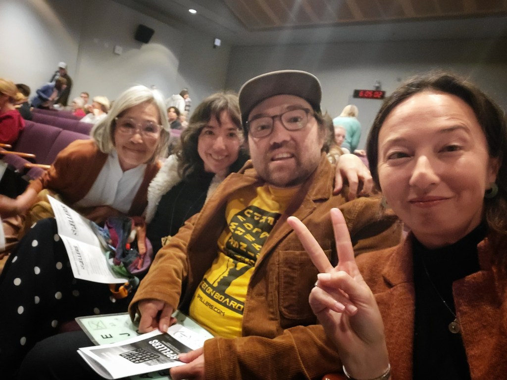 I was honored to be asked to give the welcome message before the film, and to be part of the panel after alongside cast members Evan and Madison and local Speller Oliver. Wow! This was my first time presenting on a real stage, and it felt so right! I loved being up there so much. And to have my mom and younger sister in the audience felt so beautiful, and so meaningful. This was the first time they got to see me present to an in-person audience. My sister even bought me a beautiful bouquet of flowers, and it made me feel so special! To be onstage advocating for us nonspeakers while my family watched was such a proud moment!