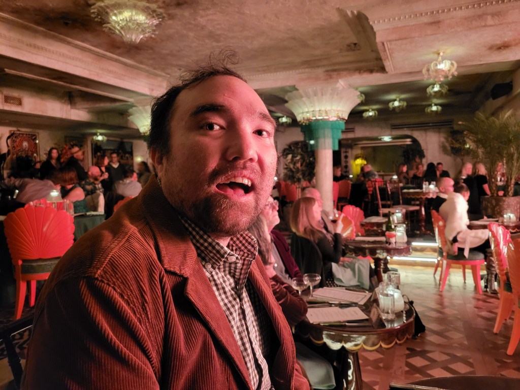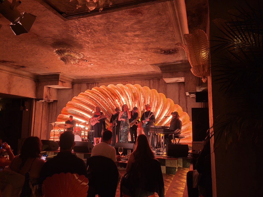 Wow, I had the best night last night! Tara took me out to a dinner and show at a newly opened, renovated historic venue, Lou Lou’s Club at the Lafayette Hotel. It was gorgeous! So elegant and fun. It was a real supper club experience, with a beautifully dressed crowd, delicious food, and fantastic music! The murmur of the crowd was perfectly loud for me; it made my stimming inconspicuous and it was a pleasant sensory input. The table we reserved was great, right on the edge of the lower dance floor, so our view of stage was uninterrupted.
