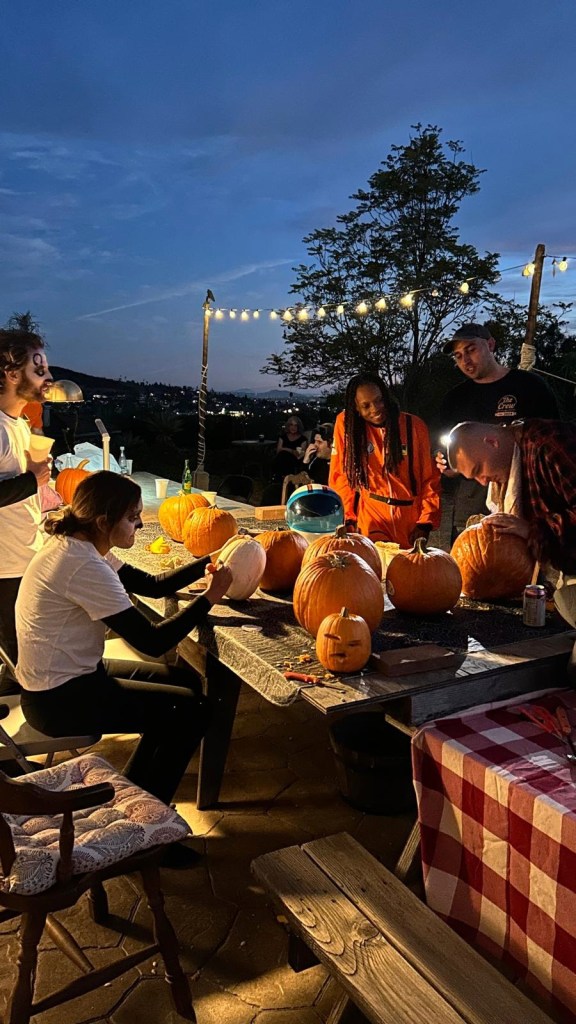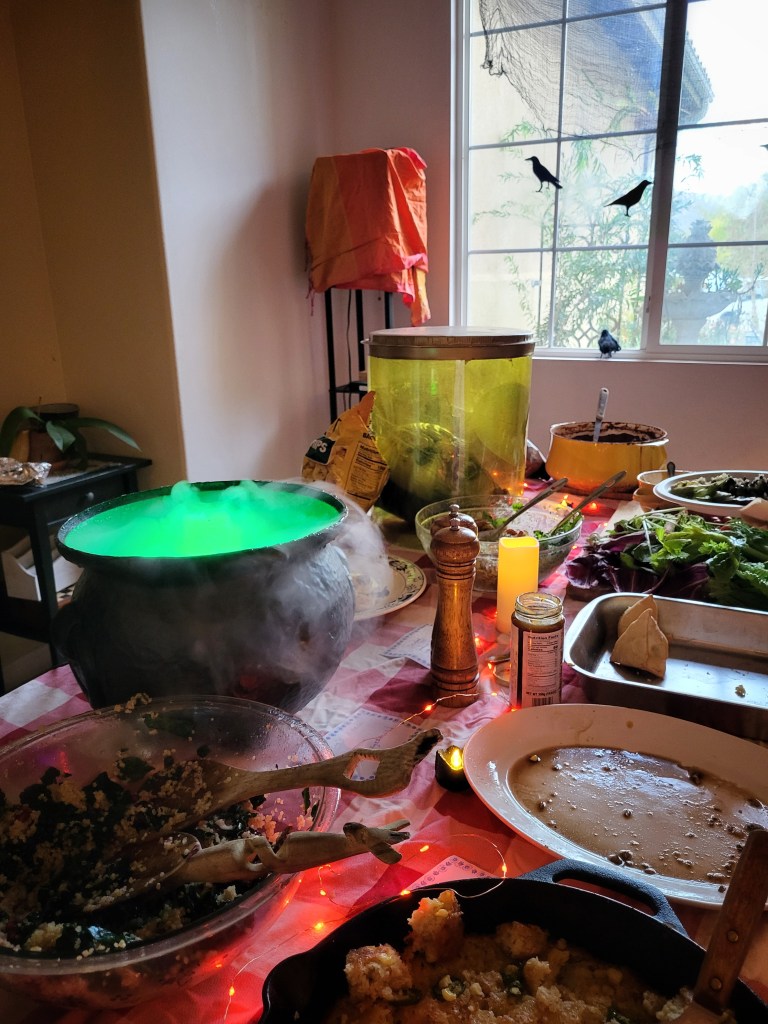 It was probably the last event we will host in this home. We need to move by March and are already looking for a new home to rent. I have been sad and stressed about it, but this party raised my spirits and helped me bask in gratitude for having been able to live here and share this beautiful place with friends. It was a magical evening, with good food, spooky music, fun costumes, and friends enjoying carving pumpkins and eating and hanging out. I also had an aura reading booth, and got to dramatically read the auras of guests with the help of my aye-aye assistant. I had the best time.