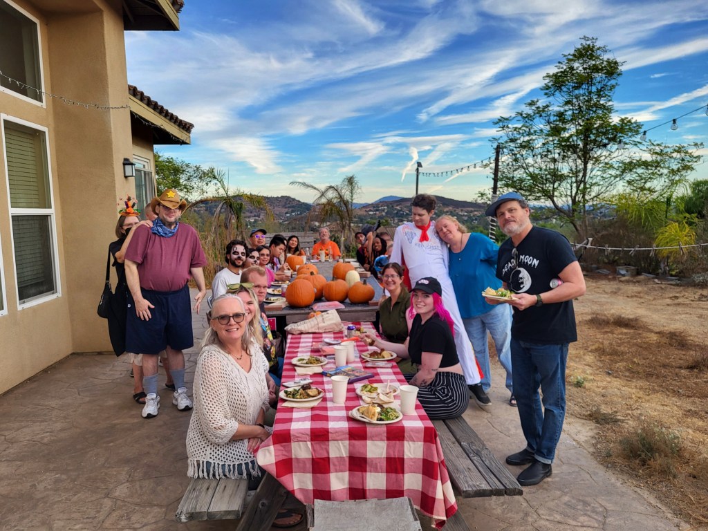 Third: I am so absolutely thrilled by this part! We hosted an amazing Halloween party. Wow. It was so good! I directed it, and invited a mix of spellers and nonspellers, and kept it ages 26 and up (with two exceptions for family members of dear friends). I wanted a truly inclusive environment, which is not the same as a segregated event only for disabled folks and their families. And I wanted to have a space for us grown-up spellers to get away from childish activities that often come with events for spellers. It was great to see the house and back patio full of friends having a great time! My mom cooked an impressive feast, and my sisters and some guests brought delicious additions. Tara decorated based on my specifications. It looked great!