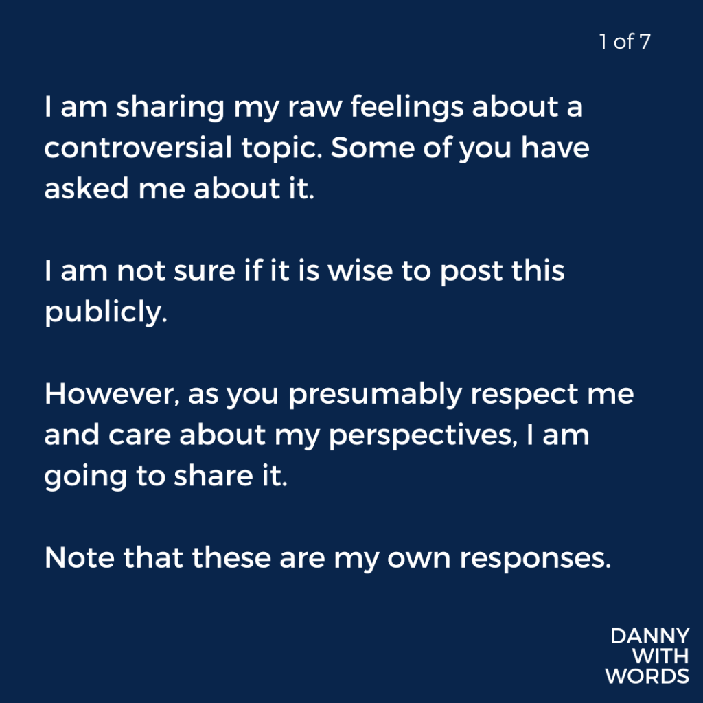 I am sharing my raw feelings about a controversial topic. Some of you have asked me about it. I am not sure if it is wise to post this publicly. However, as you presumably respect me and care about my perspectives, I am going to share it. Note that these are my own responses.