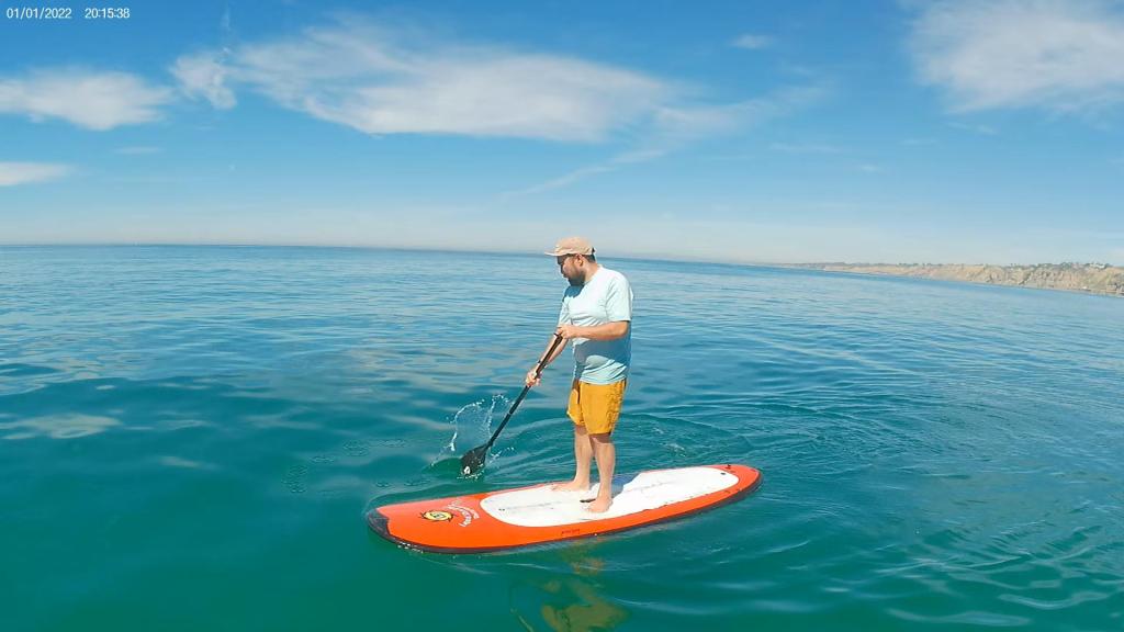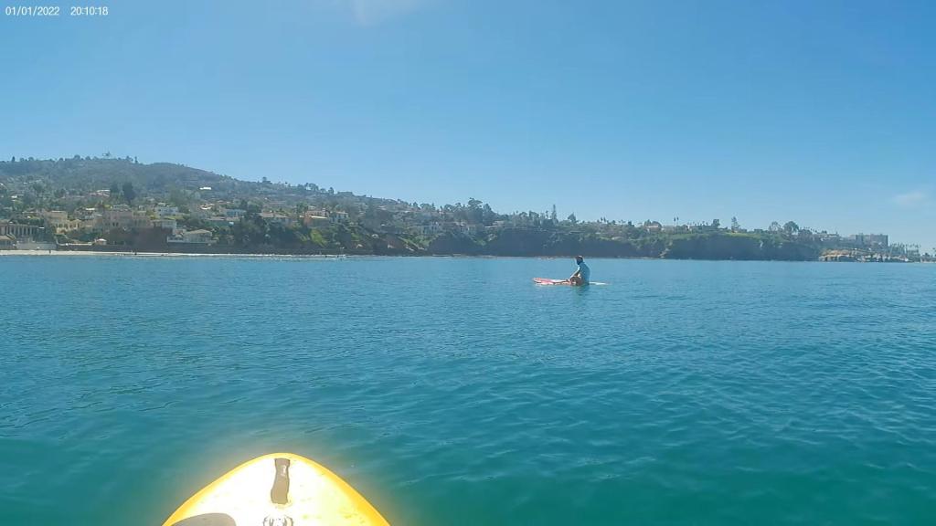 I am sharing a more close-up photo of my best wave from last month (photo by Cliff Schumacher). I also am sharing screen grabs from video of a nice SUP outing from last month. It was so warm that we jumped in the water to cool off!