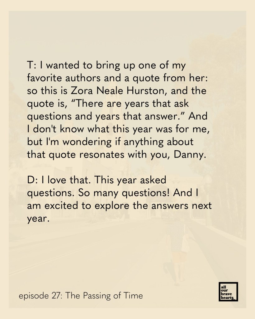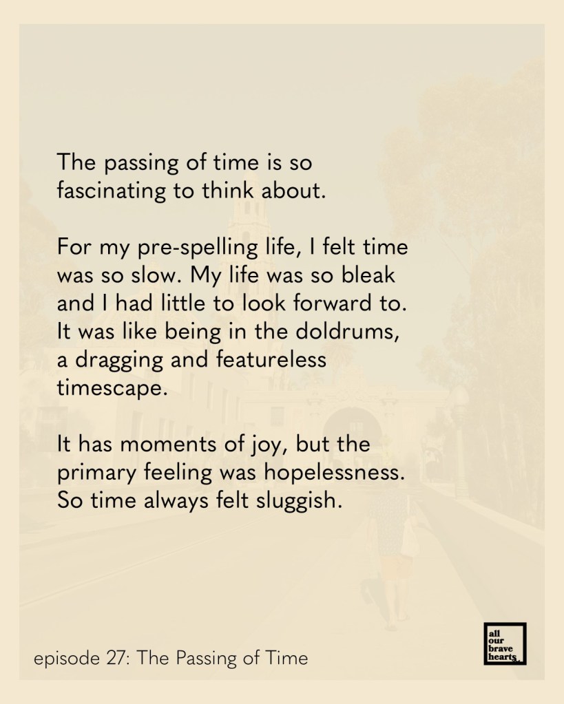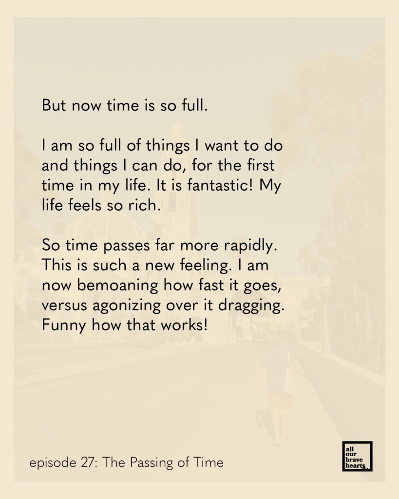 Finally, we have a new All Our Brave Hearts episode up! This was recorded in early December. Fittingly, the topic is how time passes.