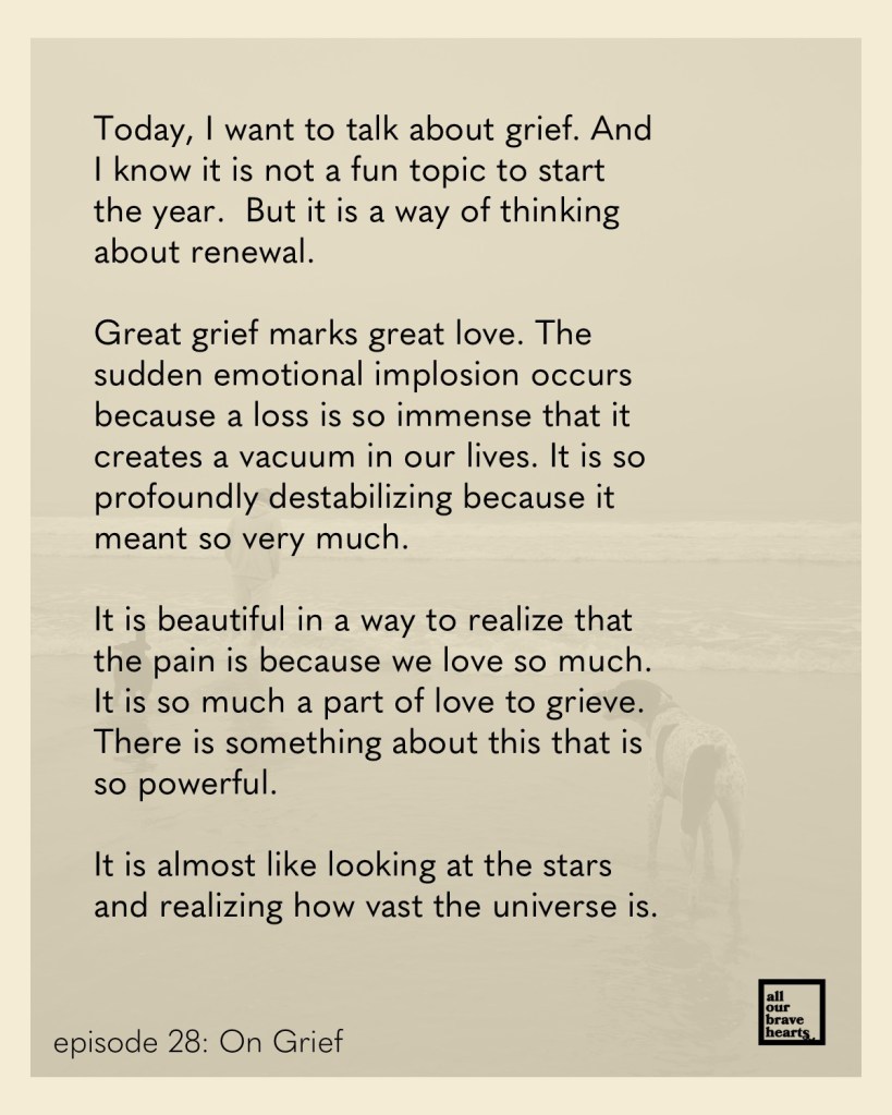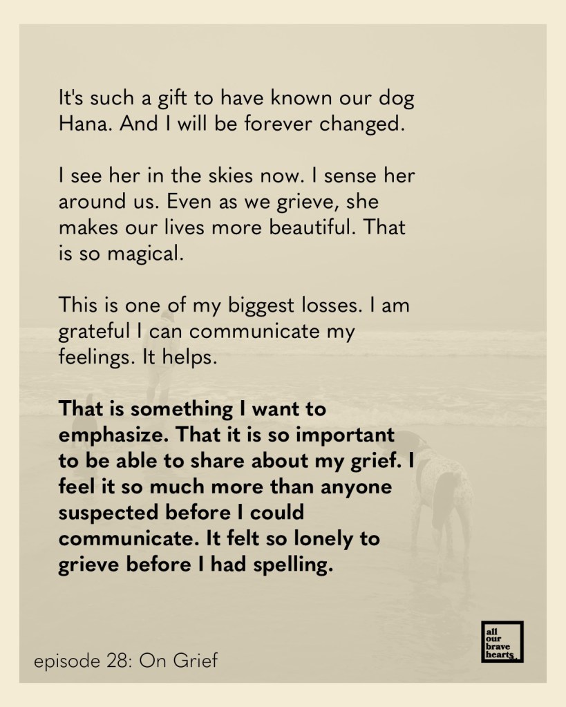 Time for another All Our Brave Hearts episode! This one is a bit sad, so save it for later if now is not a good time for that. This episode is on grieving a loved one. We recorded it after losing our beloved dog Hana, but before losing Houdini. It was a tough time. It became even tougher.