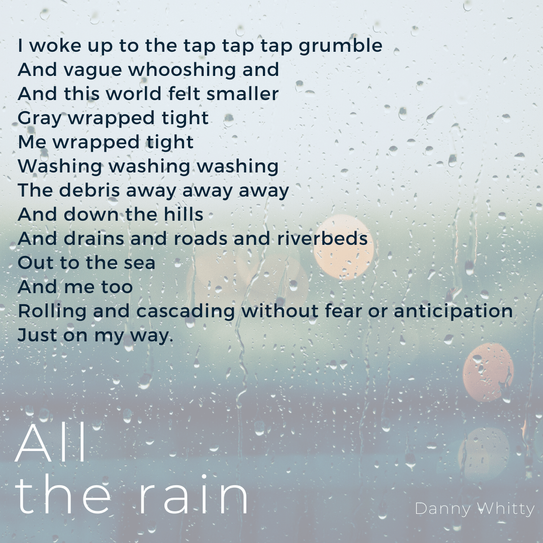 Dear Friends, Happy New Year! After feeling amazing during Christmas, I have been very out of sorts for a few days. But I wanted to share this poem. It was written about days like the rainy ones we are having this week in San Diego, washing away 2022. It is a summary of a bigContinue reading “All the rain”